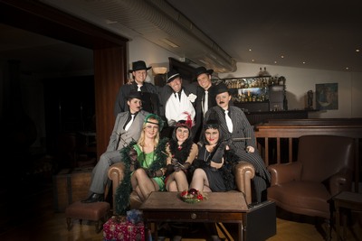 Wir haben uns im Kostümverleih als Mafiosi und Gängsterbräute ausstatten lassen, eine Visagistin hat uns geschminkt und unser Grafiker Franz Kuttelwascher hat uns in der Zigarrenlounge der Weinstube Messmer in Szene gesetzt.