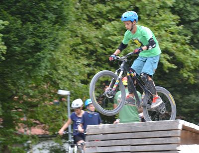 "Eine tolle Sache", findet Christoph Preis, der die Initiative darum mit einer Spende von 3000 Euro unterstützt hat. Bei der Scheckübergabe konnten alle Beteiligten sich gleich ein Bild von der Arbeit machen: Schon zum zweiten Mal waren die Trainer von Check your Risk nämlich nach Lindau, in den neuen Bikepark des Alpenvereins gekommen. Hier fand das Training mit Schülern verschiedener Lindauer Schulen statt. Aktuell mit einer Gruppe von 29 Buben und Mädchen des Bodenseegymnasiums, mit dabei : Sportlehrer Klaus Göttlicher. Zwei Vormittage lang konnten die Schüler und Schülerinnen ihr Talent auf dem Bike austesten, bergauf und bergab fahren, coole Sprünge wagen und dabei eben erfahren, wo ihre Grenzen sind - alles unter der Anleitung von drei ausgebildeten Trainern des Alpenvereins. Mit dabei auch Robert Lassahn, Projektleiter von Check your Risk. Zur Spendenübergabe waren auch Thomas Hummler, Vorsitzender des Lindauer Alpenvereins und Stephan Kraus, Stiftungsvorstand der VR-Stiftung. Gemeinsam freuten sie sich über das Medienecho, das die Inittative hervorgerufen hat, denn neben der Lokalzeitung war auch der Fernsehsender Allgäu TV in den Lindauer Bikepark gekommen, um über die Initiative zu berichten