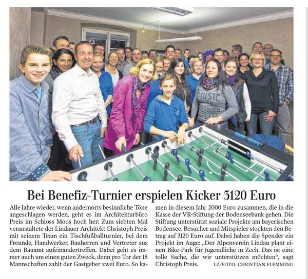 Dem Bericht aus der Lindauer Zeitung gibt es eigentlich nur eines hinzuzufügen: Der Pokal, um den die 18 Mannschaften gekämpft haben, steht nun bei uns im Büro, denn aus einem spannenden Finale ging das Team "Rosinante" (Rosalba Greco und Harald Wölfle) siegreich hervor.