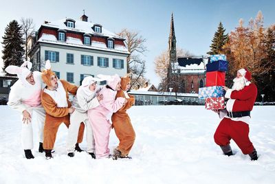 Der Weihnachtsmann trifft die Osterhasen - wer hat sich denn da in der Zeit geirrt?